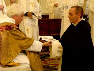 Gary Burns OP makes profession in the hands of the prior, fr Edward Conway OP